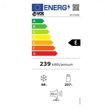 Classe Energética E Capacidade líquida (lt): 295 Capacidade líquida do frigorífico (lt): 207 Capacidade líquida do congelador (lt): 88 Arrefecimento TOTAL NO FROST Classificação por estrelas:**** (4 estrelas) Proteção antibacteriana Luz LED no interior Prateleiras de vidro Gavetas transparentes Porta reversível Pés ajustáveis Prateleiras da porta removíveis Prateleiras ajustáveis Suporte de ovos Classe climática: SN, ST Sistema Total No Frost com evaporador Sistema ventilação Multi Cooling Dimensões (AxLxP): 186 x 59,5 x 60 cm