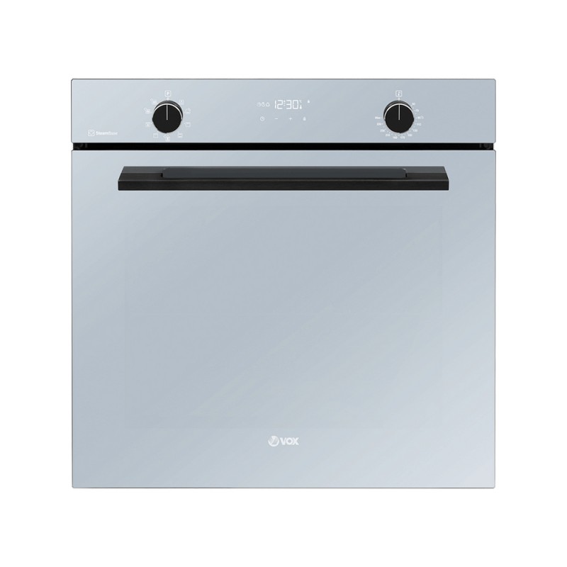 Painel traseiro e laterais pirolíticos Elétrico com Grill Ventilado Capacidade do forno: 78L Elemento superior: 1200W Elemento inferior: 1100W Grill elétrico: 1400W Função Convecção 3D Cooking - ventilador com anel de aquecimento Termostato mecânico Cortina de ar na abertura da porta Tecnologia de cozedura com vapor Limpeza pirolítica e com vapor Inclui cabo de alimentação Dimensões (AxLxP): 595 x 595 x 575 mm